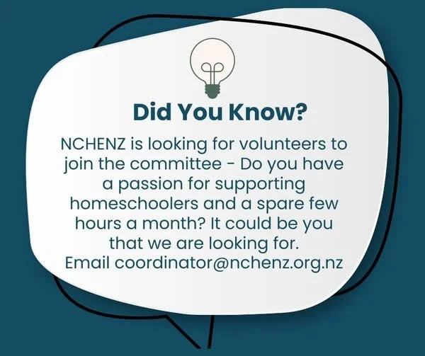 The National Council of Home Educators NZ (NCHENZ) has been an Incorporated Society since 1998, dedicated to supporting and advancing home education across Aotearoa NZ at a national level.