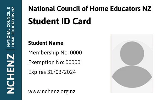 Student ID cards for their home educated tamariki/children. It can be used for public transport discounts, cinema concessions, truancy officer approaches, etc. It also gives home educatedstudents a sense of belonging to a wider group when owning or carrying a card.